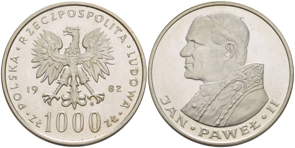 -----Польша 1000 злотых 1982 MW, визит папы Иоанна Павла II в Польшу KM 144, Parchimowicz 337a серебро UNC 1087-6-64НовинкиАнтичность и раннее СредневековьеМонеты - ГерманияМонеты - ЕвропаМонеты - Австралия и ОкеанияМонеты - АзияМонеты - АмерикаМонеты - АфрикаМонеты - Россия, СССР, страны СНГ и БалтииБанкнотыАксессуары, ЛитератураОткрытки, карточкиАкции, облигацииЖетоны, Медали, ЗнакиМаркиКартины, декоративно-прикладное искусство
