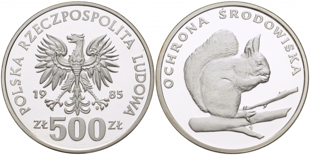 ПОЛЬША 500 ЗЛОТЫХ 1985 MW, СЕРИЯ ОХРАНА ОКРУЖАЮЩЕЙ СРЕДЫ, БЕЛКА, ТИРАЖ 8000 ЭКЗ. KM 159 серебро PROOF 1076-10-34
