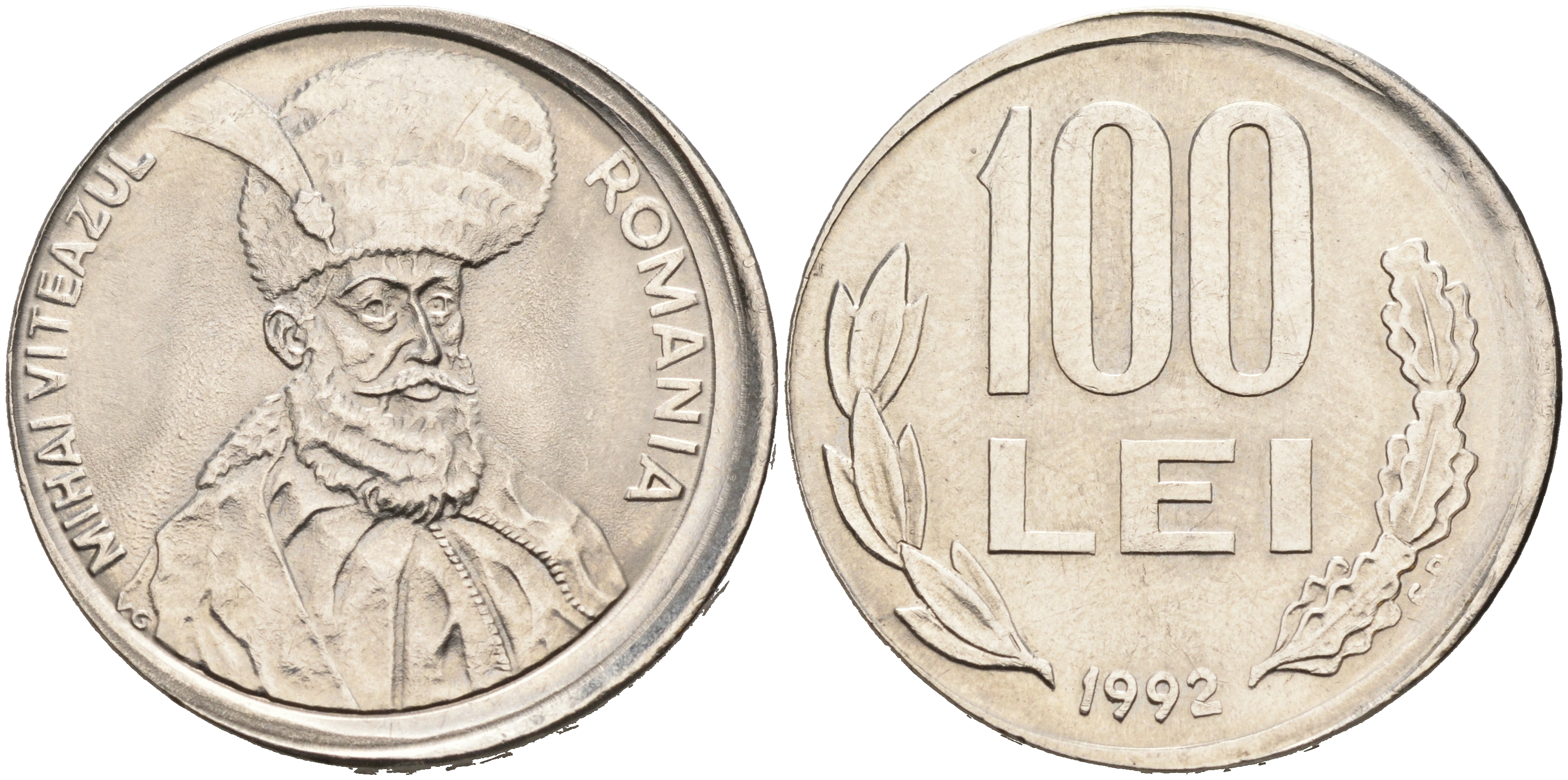 РУМЫНИЯ 100 ЛЕЙ 1992 технологический брак монетного двора KM 111 сталь плакированная никелем UNC 441-1022