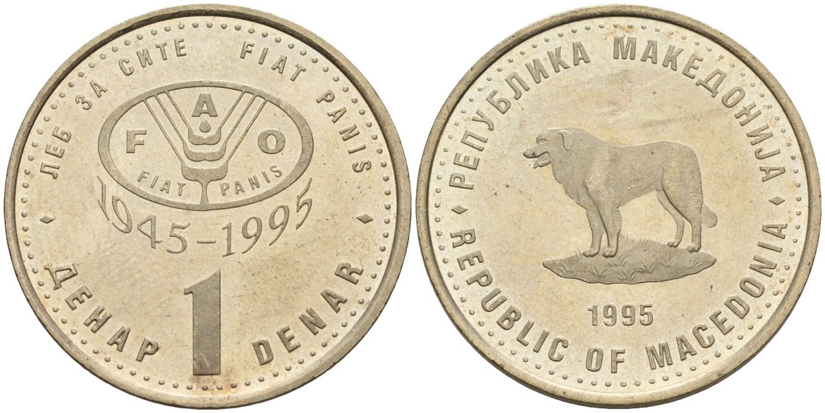 ---Северная Македония 1 денар 1995 50 лет ФАО KM 5a медь цинк никель 4141-547НовинкиАнтичность и раннее СредневековьеМонеты - ГерманияМонеты - ЕвропаМонеты - Австралия и ОкеанияМонеты - АзияМонеты - АмерикаМонеты - АфрикаМонеты - Россия, СССР, страны СНГ и БалтииБанкнотыАксессуары, ЛитератураОткрытки, карточкиАкции, облигацииЖетоны, Медали, ЗнакиМаркиКартины, декоративно-прикладное искусство