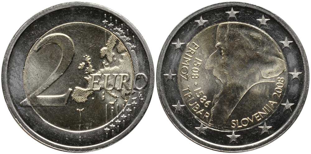 Словения 2 евро 2008 500 лет со дня рождения Приможа Трубара KM 80 биметалл UNC 115-1122