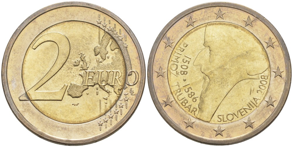 Словения 2 евро 2008 500 лет со дня рождения Приможа Трубара KM 80 биметалл UNC 4185-646