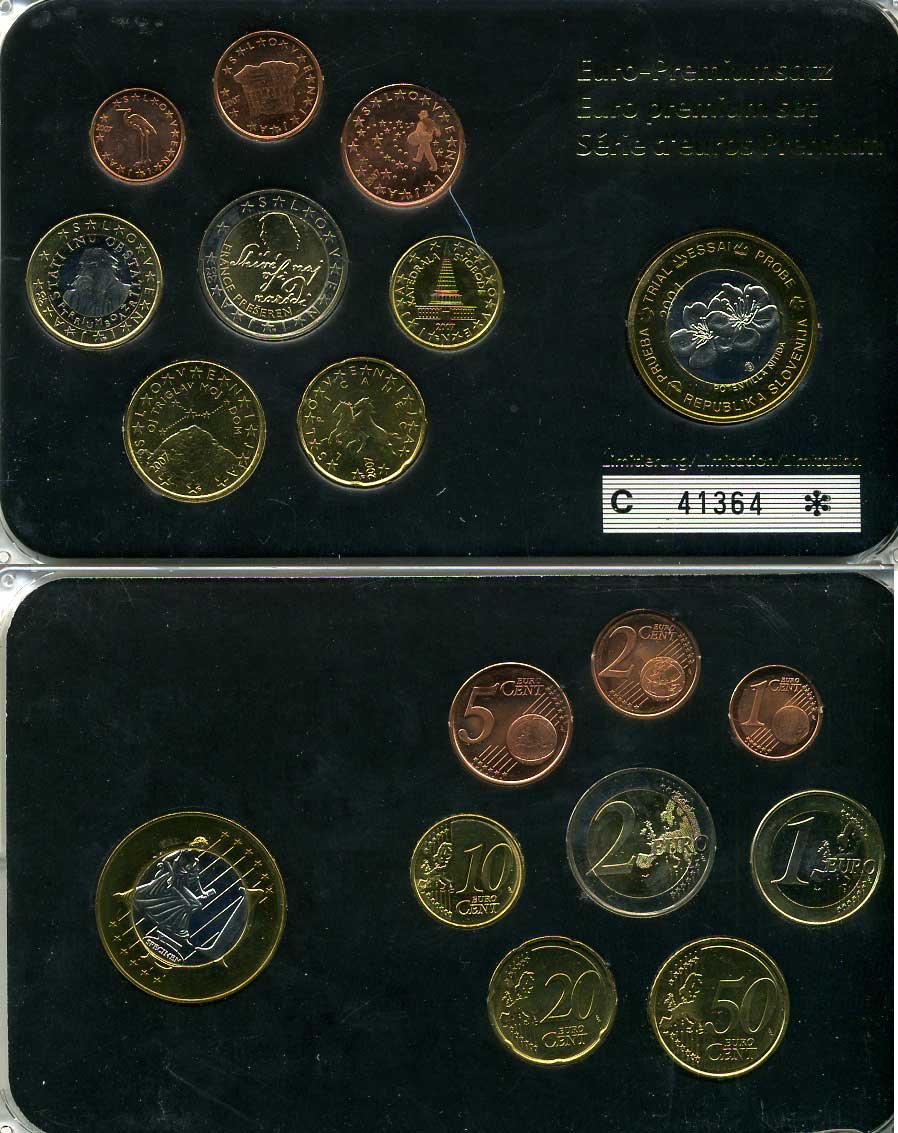 Словения евронабор из 8 монет + 1 евро пробник 2007 2 евро юбилейные, в пластике биметалл UNC 1181-1-12
