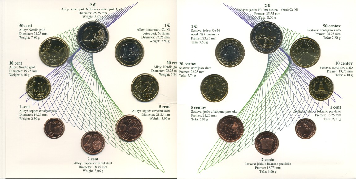 Словения набор из 8 монет 2007 Франце Прешен, официальный набор в запайке и буклете UNC 7-4-2-47