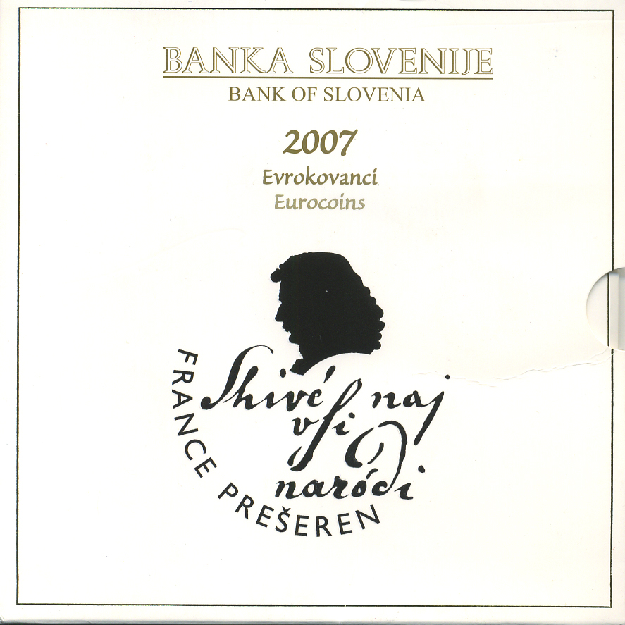 -----Словения набор из 8 монет 2007 Франце Прешен, официальный набор в запайке и буклете UNC 7-4-2-47