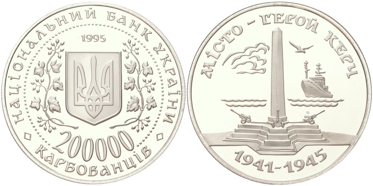 Украина 200000 карбованцев 1995 Города-герои Украины - Керчь KM 11 медно-никель PROOF 01-231-43
