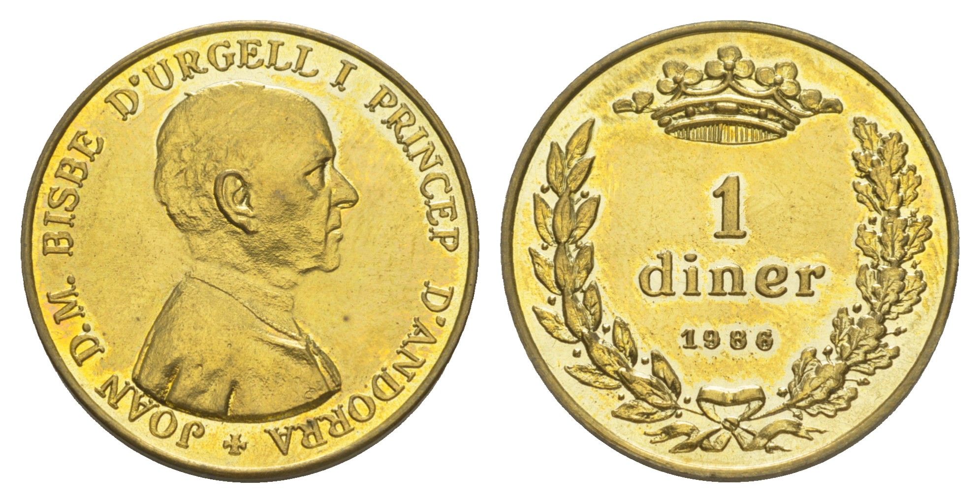 Андорра 1 динер 1986 KM 35 латунь BU 1528-834