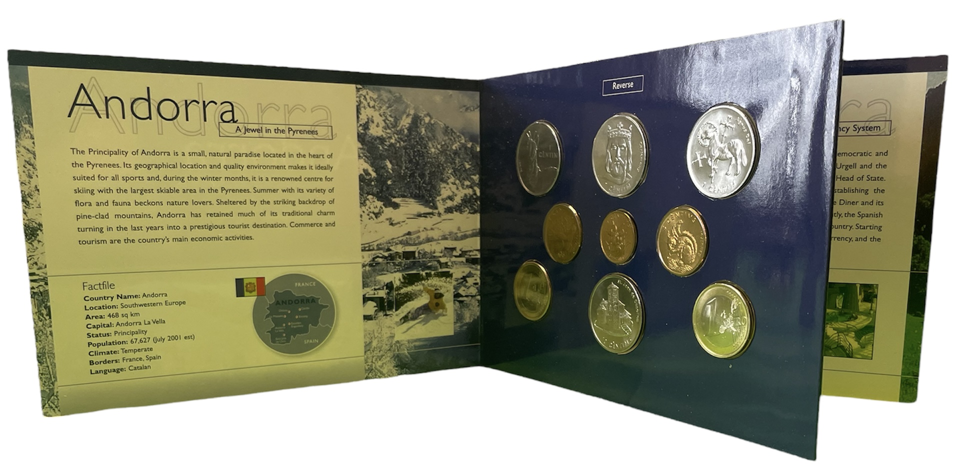 Андорра набор из 9 монет 1999-2002 включая евро Франции и Испании биметалл UNC 00-00