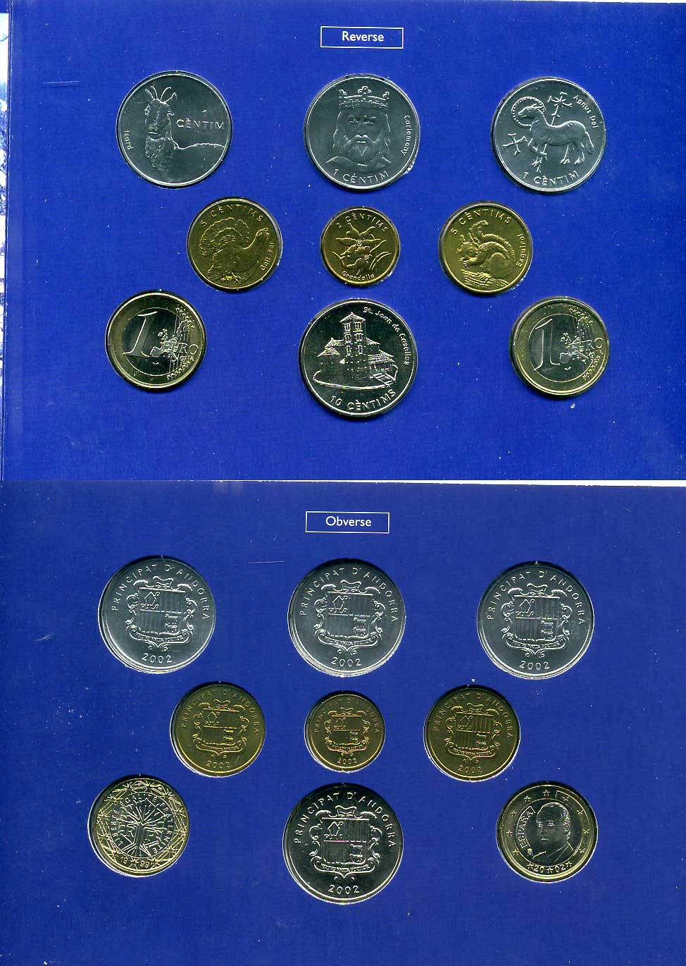 Андорра набор из 9 монет 1999-2002 включая евро Франции и Испании биметалл UNC 1-6-4-74