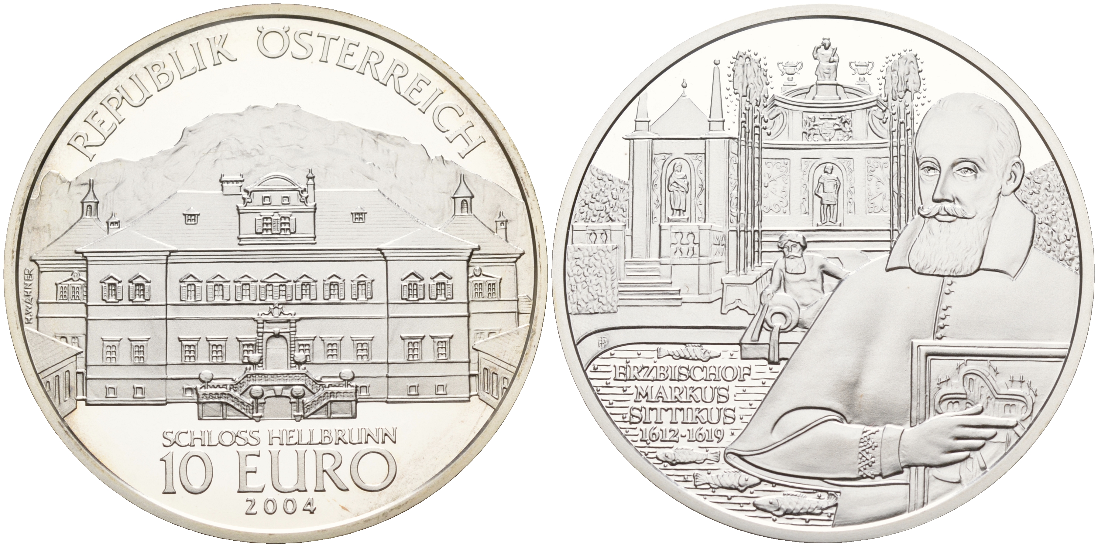 Австрия 10 евро 2004 Замок Хельбрунн, Маркус Ситтикус KM 3111 серебро PROOF 1-5-2-15