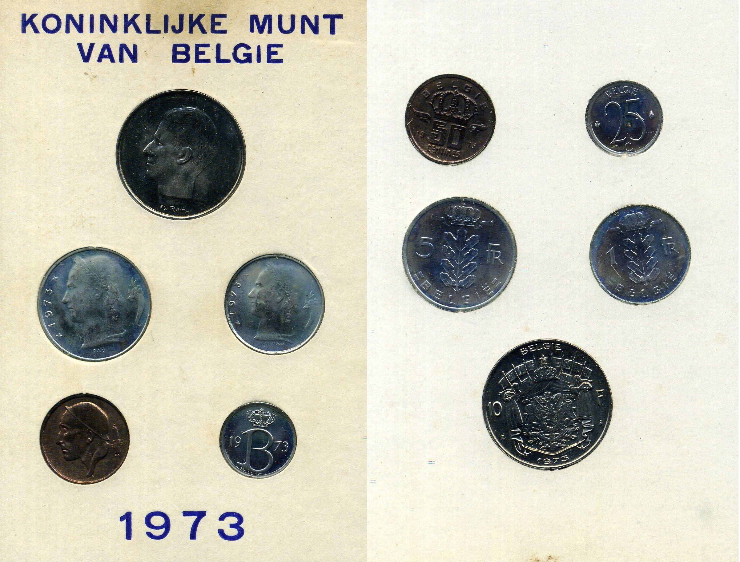 Бельгия набор из 5 монет (25 и 50 сантимов; 1, 5 и 10 франков) 1973 Belgie, в оригинальном буклете мондвора KM SS7 (135.1, 143.1, 149.1, 154.1 и 156.1) UNC 8-2-05-82