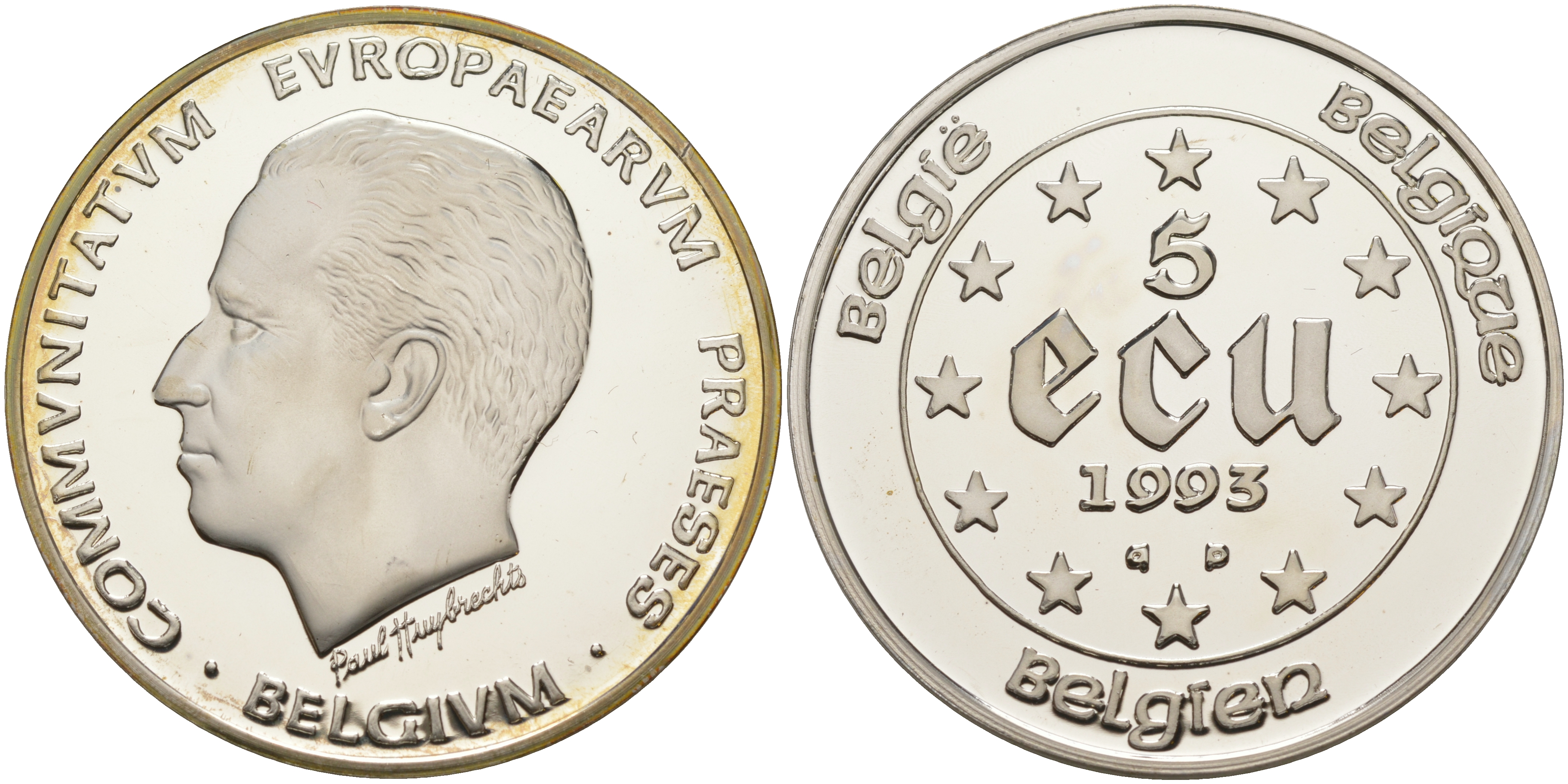 Бельгия 5 экю 1993 председательство Бельгии в Евросозе, Бодуэн I KM 185 серебро PROOF 1074-4-32