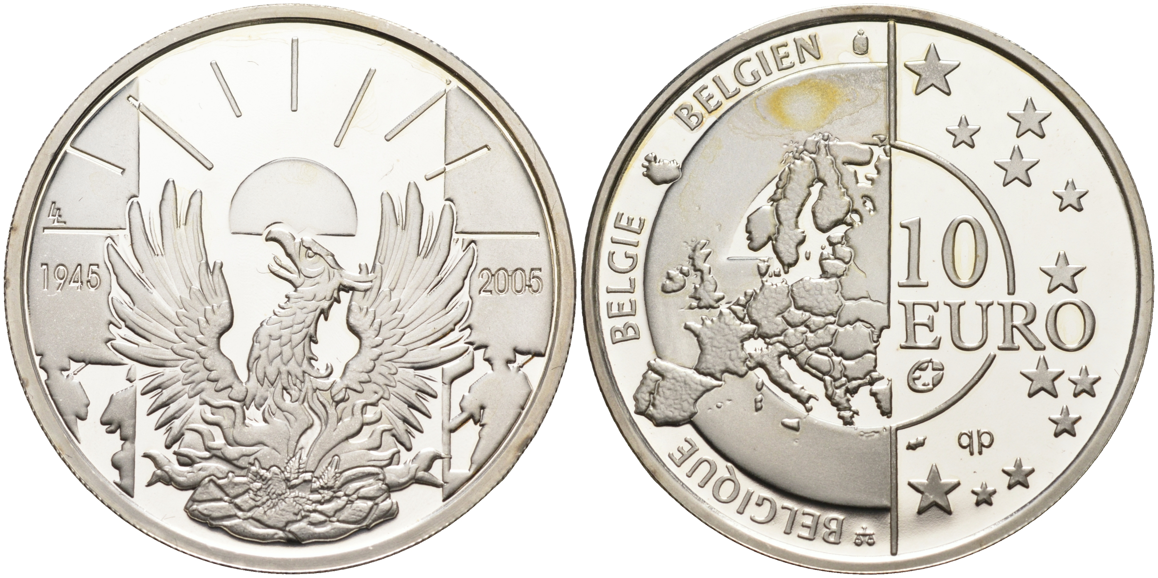 Бельгия 10 евро 2005 60 лет освобождения от фашизма KM 252 серебро PROOF 1087-4-71