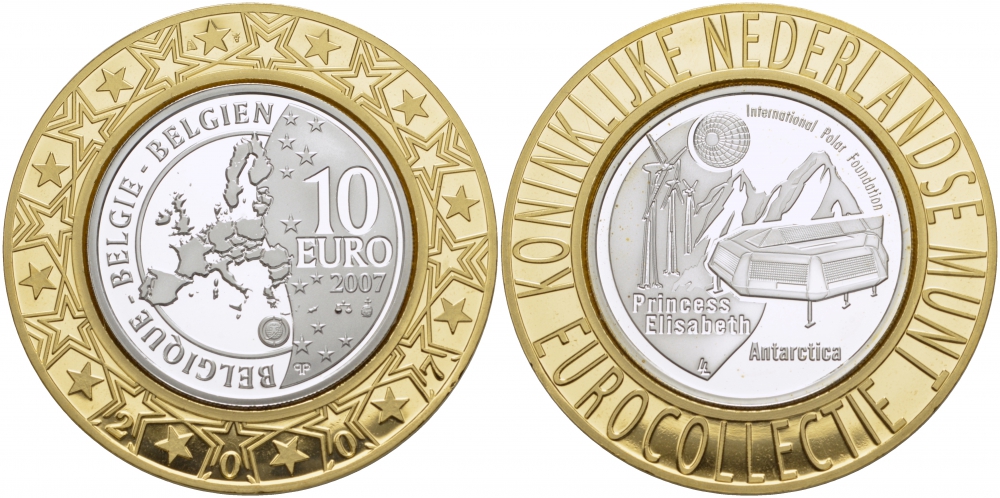 БЕЛЬГИЯ 10 ЕВРО 2007 МЕЖДУНАРОДНАЯ ПОЛЯРНАЯ СТАНЦИЯ В АНТАРКТИДЕ, ГОД ПОЛЯРНИКА KM 263 серебро PROOF 1068-7-11