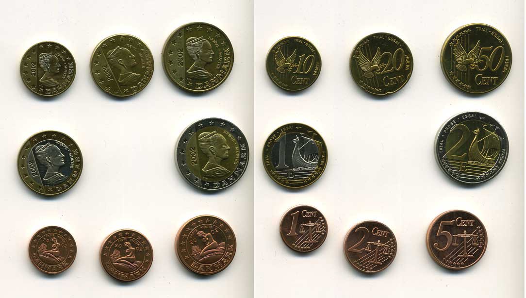 Дания евронабор из 8 монет 2002 в оригинальной коробке, с сертификатом, PROBA, пробники PROOF 5-4-6-12