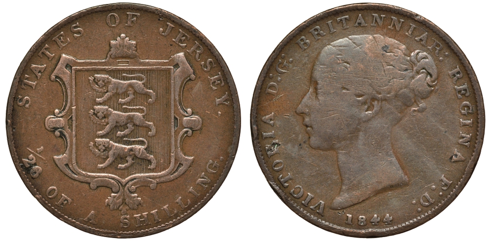 ДЖЕРСИ 1/26 ШИЛЛИНГА 1844 ВИКТОРИЯ (1837-1901) KM 2 медь 650-121