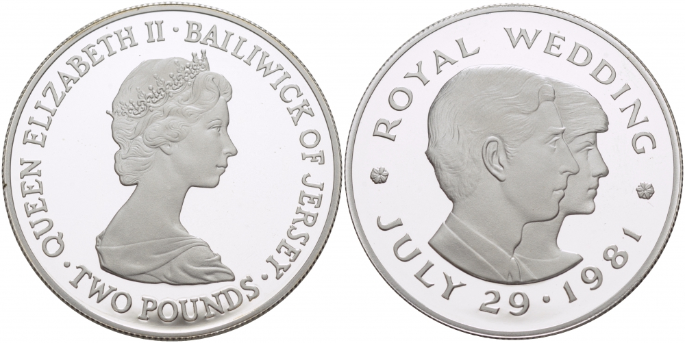 ДЖЕРСИ 2 ФУНТА 1981 СВАДЬБА ПРИНЦА ЧАРЛЬЗА И ЛЕДИ ДИАНЫ KM 52а серебро PROOF 1081-9-32