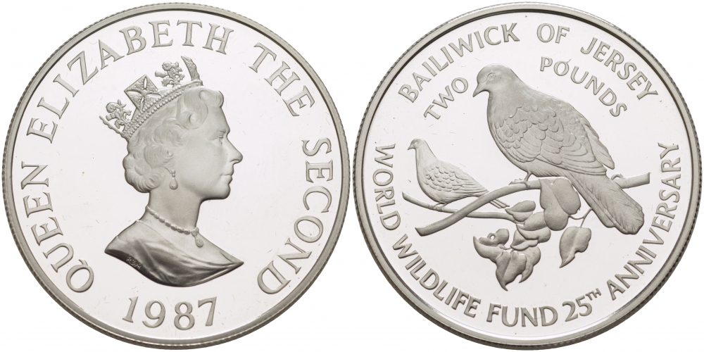 Джерси 2 фунта 1987 серия 25 лет защиты окружающей среды, голуби KM 70a серебро PROOF 1068-6-32