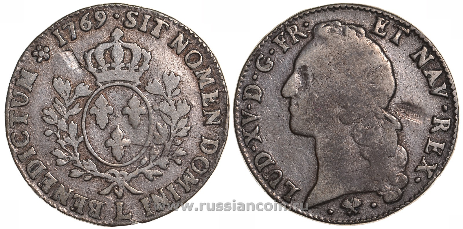 Франция 1 экю 1769 L, Людовик XV KM 512.12 серебро 00-1067-7-33