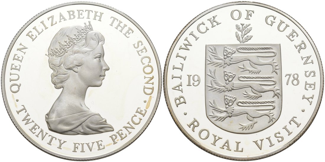 Гернси 25 пенсов 1978 Королевский визит, в оригинальной коробке KM 32a серебро PROOF 3-4-4-17