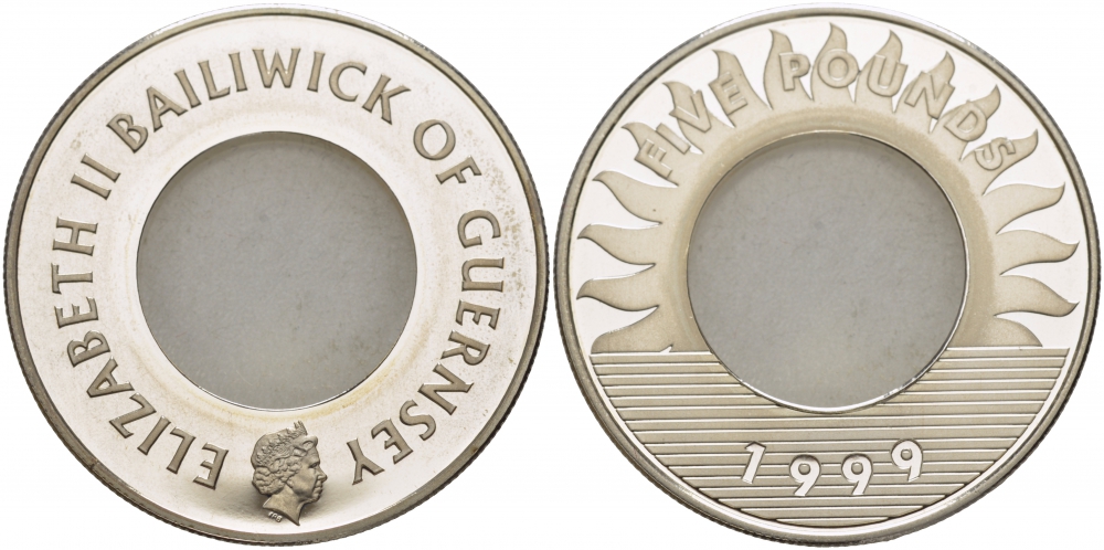 Гернси 5 фунтов 1999 миллениум, монета необычной формы KM 86 серебро PROOF 11-091-44