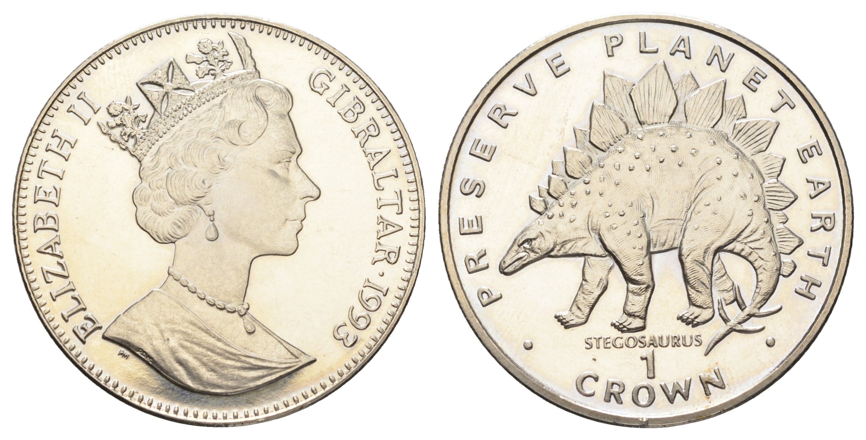 Гибралтар 1 крона 1993 Заповедник планета Земля - Стегозавр (динозавр) KM 151 медно-никель BU 1524-1711