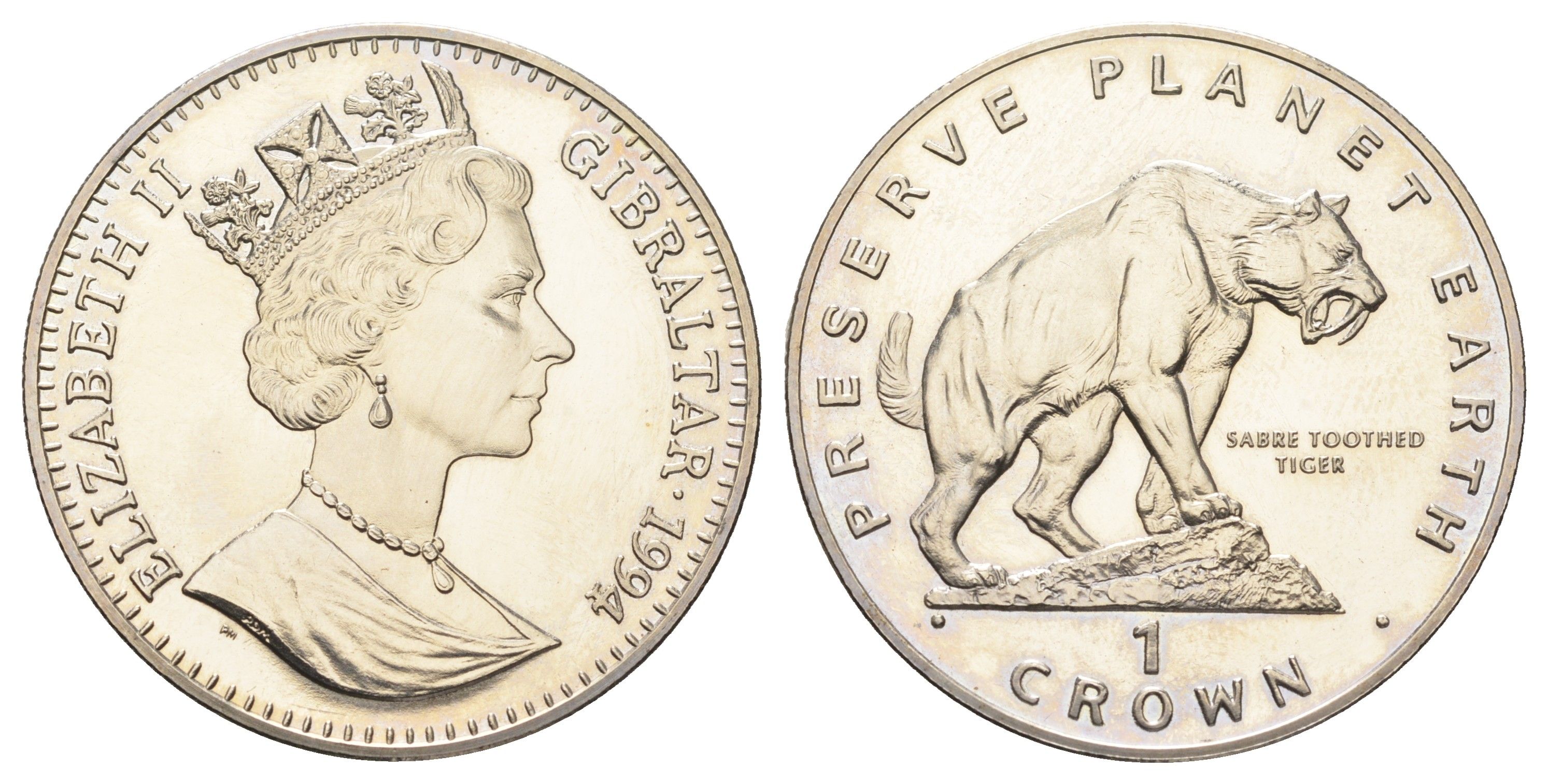 Гибралтар 1 крона 1994 Заповедник планета Земля - Саблезубый тигр KM 239 медно-никель BU 1524-1824