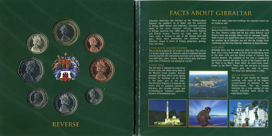 Гибралтар набор из 8 монет плюс жетон 2005 официальный набор, в оригинальном картонном буклете UNC 1-4-2-35