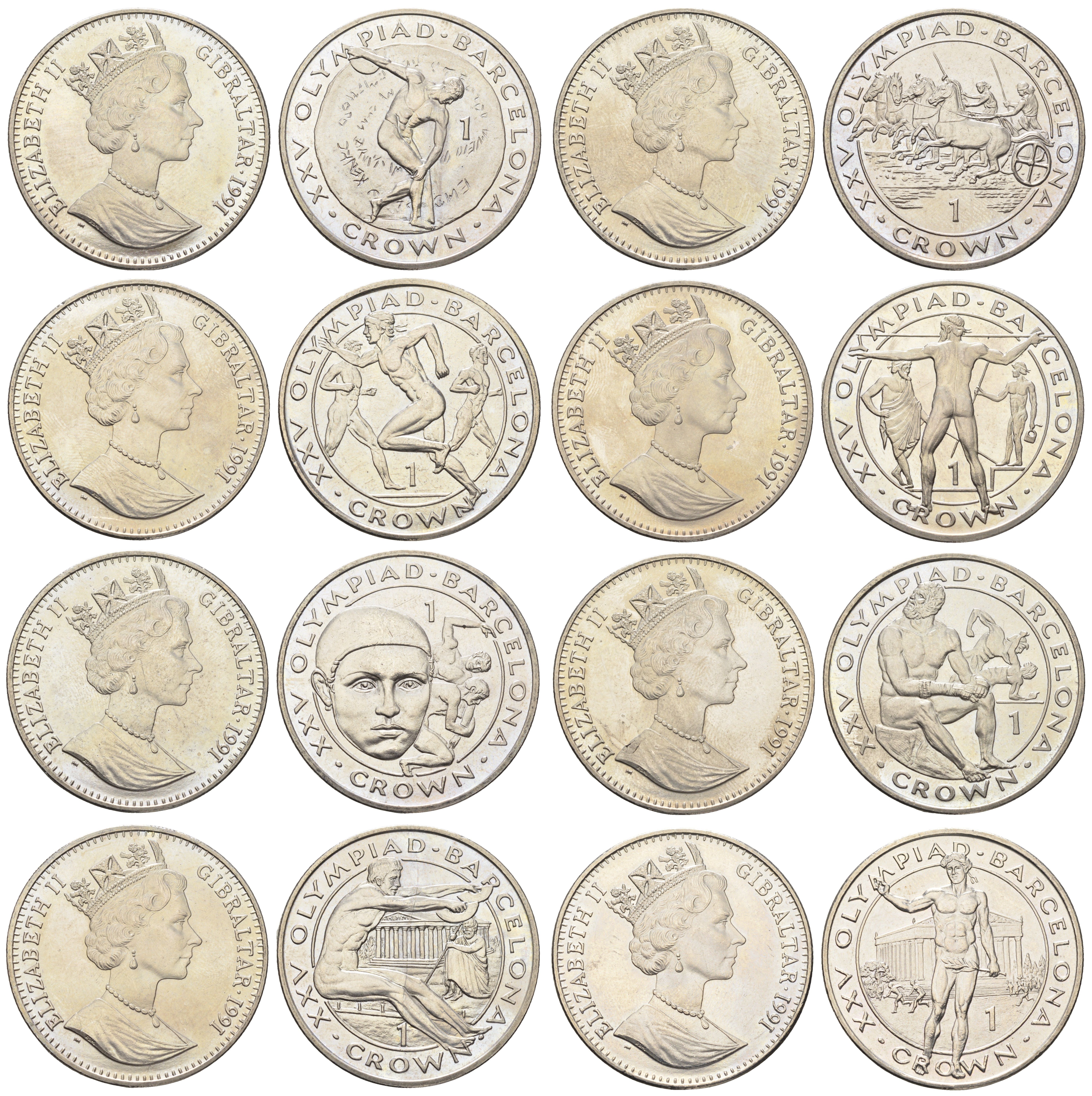 Гибралтар полный набор из 8 монет (1 крона) 1991 XXV Летние Олимпийские игры, Барселона 1992 KM 66, 67, 68, 69, 70, 71, 72 и 73 медно-никель BU 1524-1611-1623