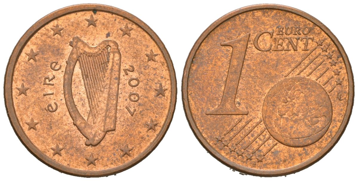 Ирландия 1 евроцент 2007 KM 32 сталь плакированная медью 4516-211