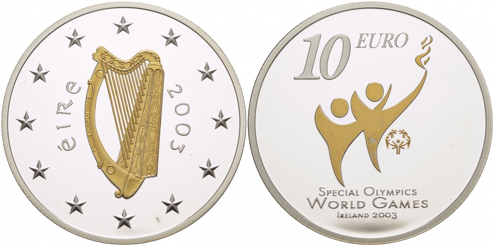 Ирландия 10 евро 2003 специальные Олимпийские игры в Ирландии 2003, позолота KM 41 серебро PROOF 01-162-31
