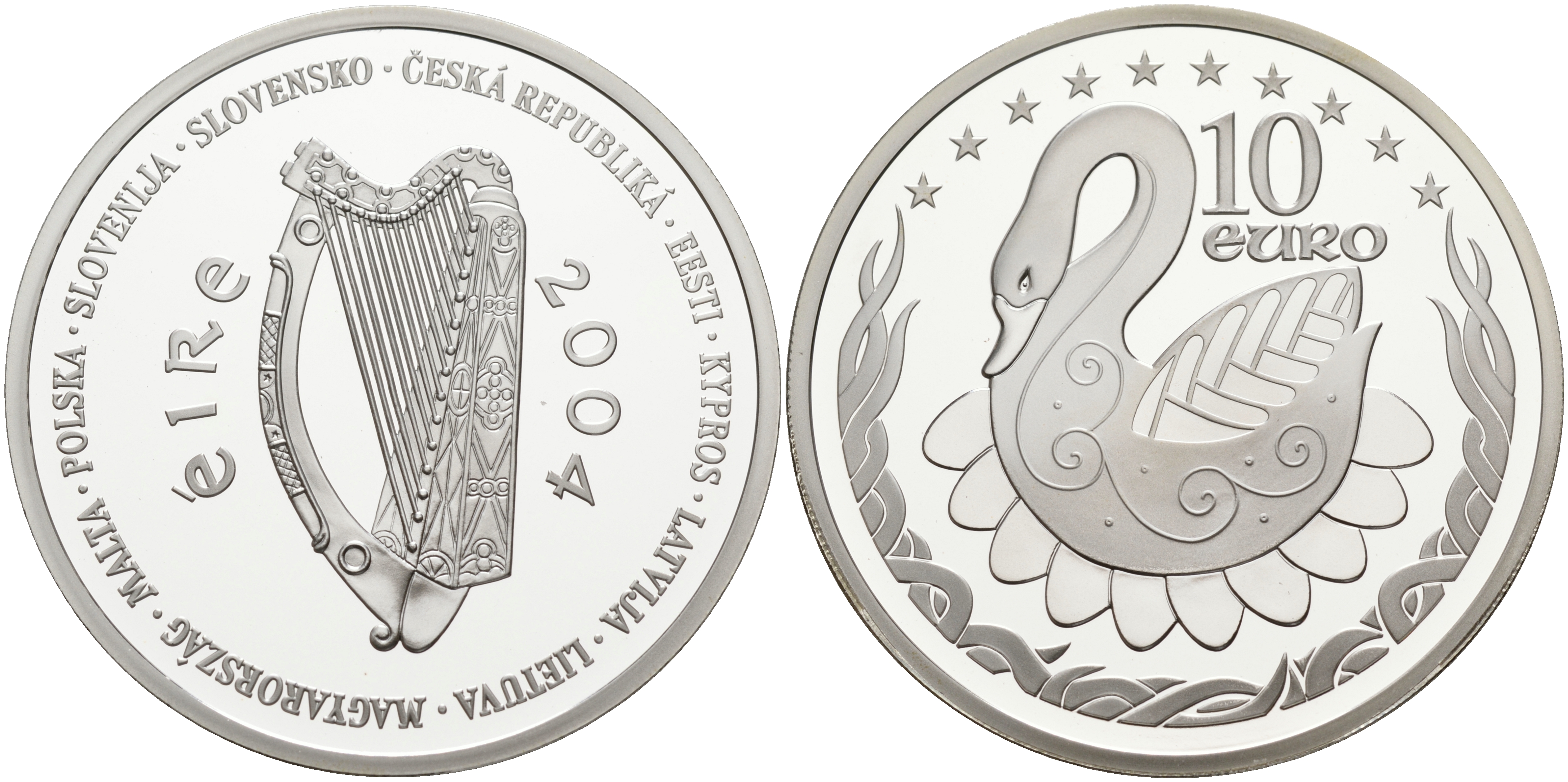Ирландия 10 евро 2004 лебедь, президенство в Евросоюзе KM 42 серебро PROOF 02-127-35