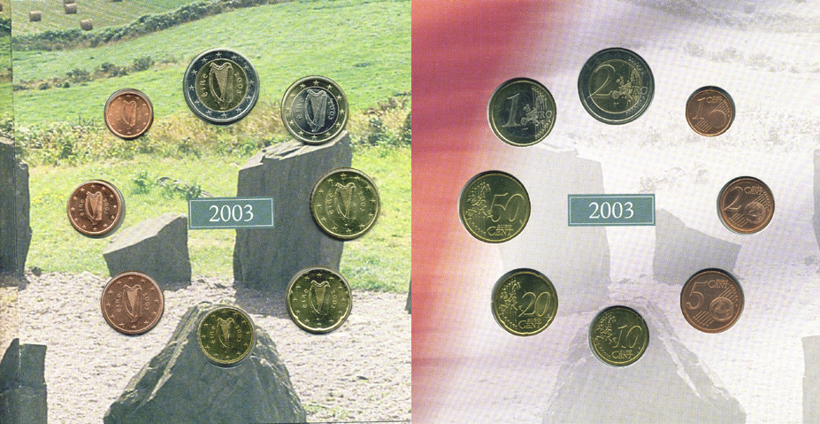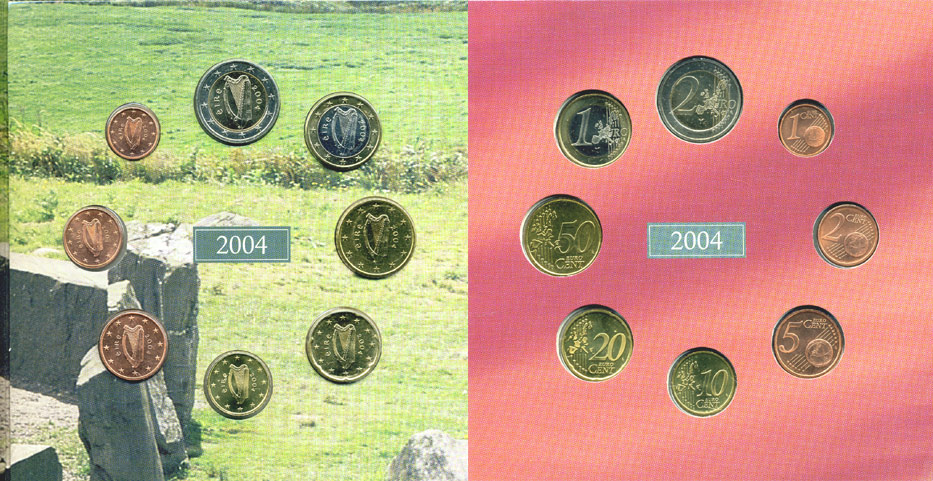 Ирландия набор из 3 евронаборов по 8 монет 2002-2004 оригинальный официальный набор из трех евронаборов, в картонном буклете UNC 5-6-1-21