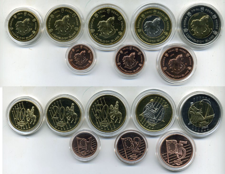 ИСЛАНДИЯ НАБОР ИЗ 8 МОНЕТ 2005 ЕВРОПРОБНИКИ (крупный формат) СЕРТИФИКАТ, КАПСУЛЫ, ЖИВОТНЫЕ, КОНЬ биметалл PROOF 06-081-8