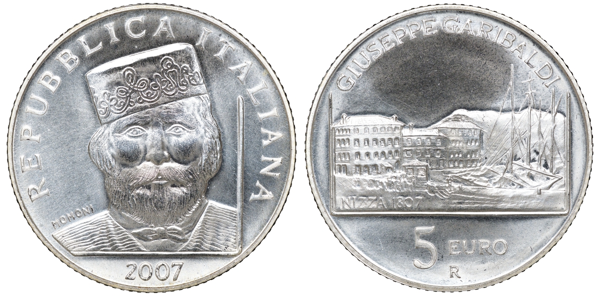 ----Италия 5 евро 2007 200 лет со дня рождения Джузеппе Гарибальди KM 292 серебро UNC 6-5-1-32НовинкиАнтичность и раннее СредневековьеМонеты - ГерманияМонеты - ЕвропаМонеты - Австралия и ОкеанияМонеты - АзияМонеты - АмерикаМонеты - АфрикаМонеты - Россия, СССР, страны СНГ и БалтииБанкнотыАксессуары, ЛитератураОткрытки, карточкиАкции, облигацииЖетоны, Медали, ЗнакиМаркиКартины, декоративно-прикладное искусство