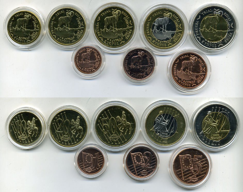КИПР ЕВРОНАБОР ИЗ 8 МОНЕТ 2003 ЕВРОПРОБНИКИ (крупный формат) СЕРТИФИКАТ КАПСУЛЫ, ЖИВОТНЫЕ биметалл PROOF 06-081-16