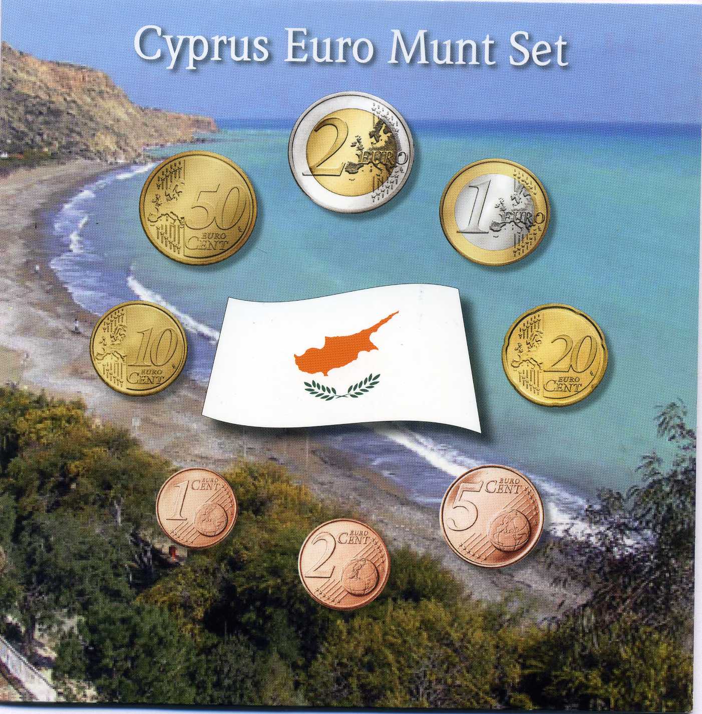 Кипр набор из 8 евромонет + жетон 2008 в красочном буклете биметалл UNC 1-6-1-09