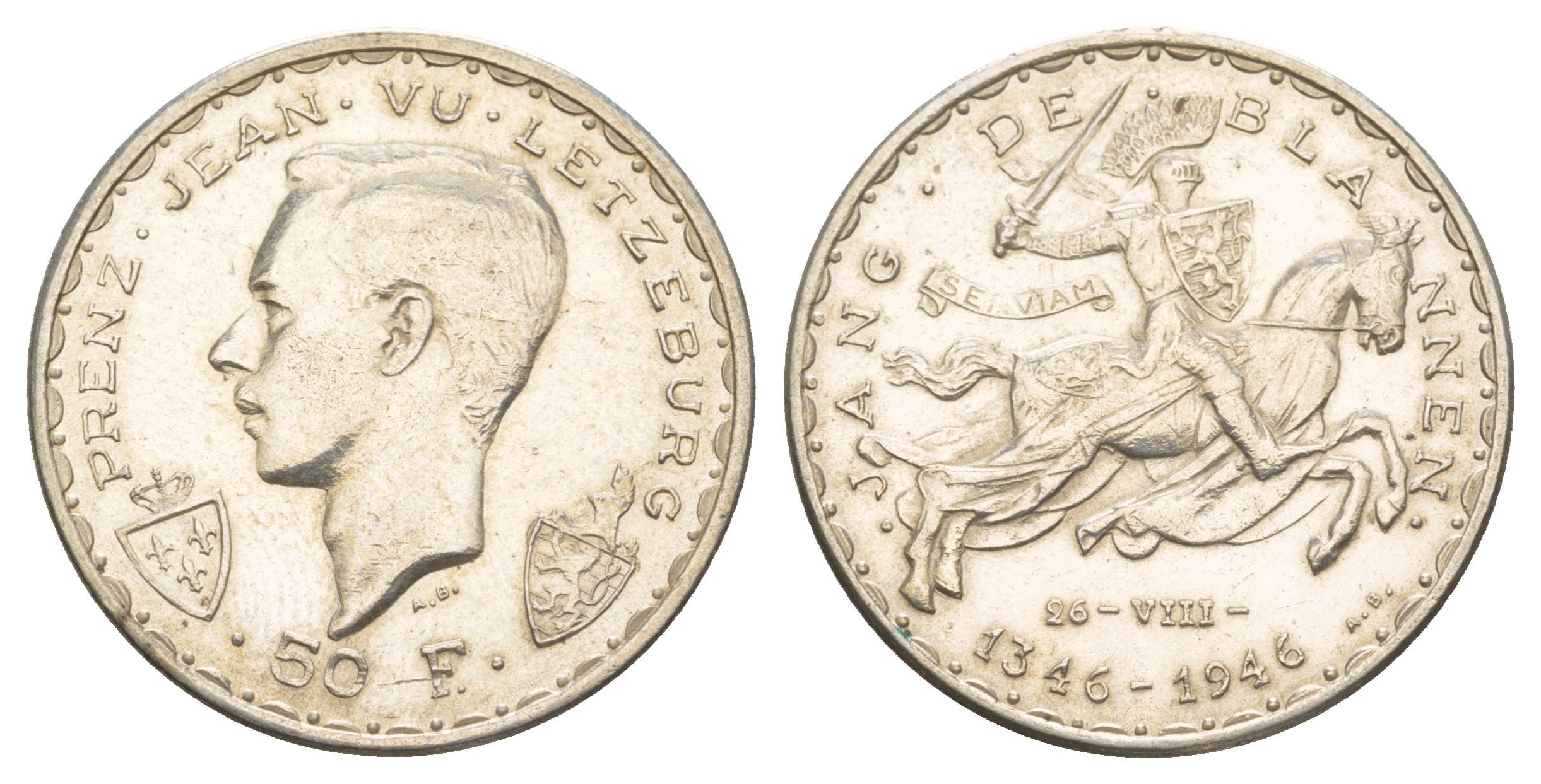 -----Люксембург 50 франков 1946 600 лет со дня смерти Иоганна Люксембургского KM 48 серебро 413-2742