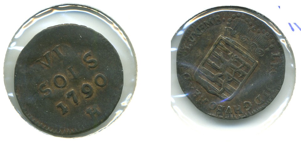 ЛЮКСЕМБУРГ 6 СОЛЕЙ 1790 KM 17 медь 503-532