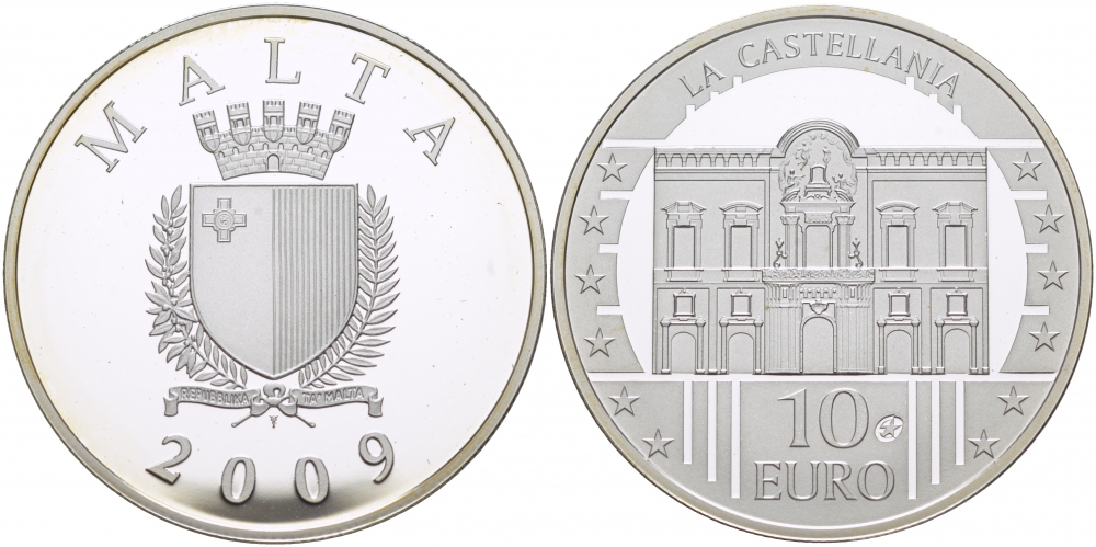 Мальта 10 евро 2009 серия культурное наследие, дворец Кастеллания KM 133 серебро PROOF 04-102-43
