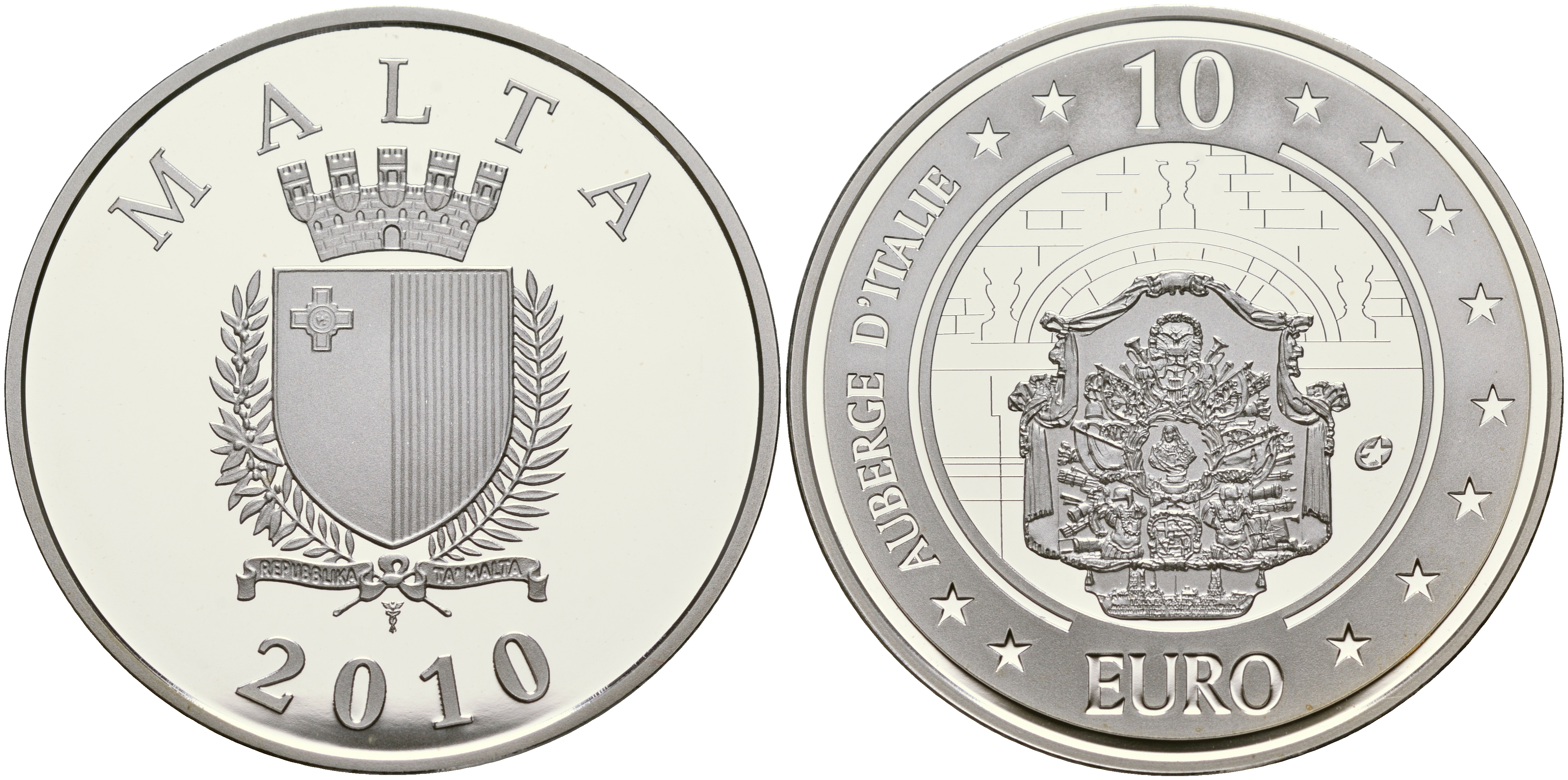 Мальта 10 евро 2010 серия культурное наследие, резиденция рыцарей Мальтийского ордена KM NEW серебро PROOF 01-165-41