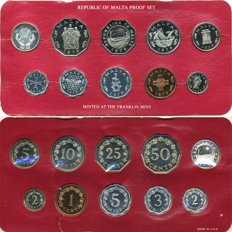 Мальта набор из 10 монет 1979 в запайке, в оригинальной коробке, с сертификатом, тираж 6577 экз. KM PS 7, KM (5-12, 29b, 51) серебро PROOF 2-6-3-09