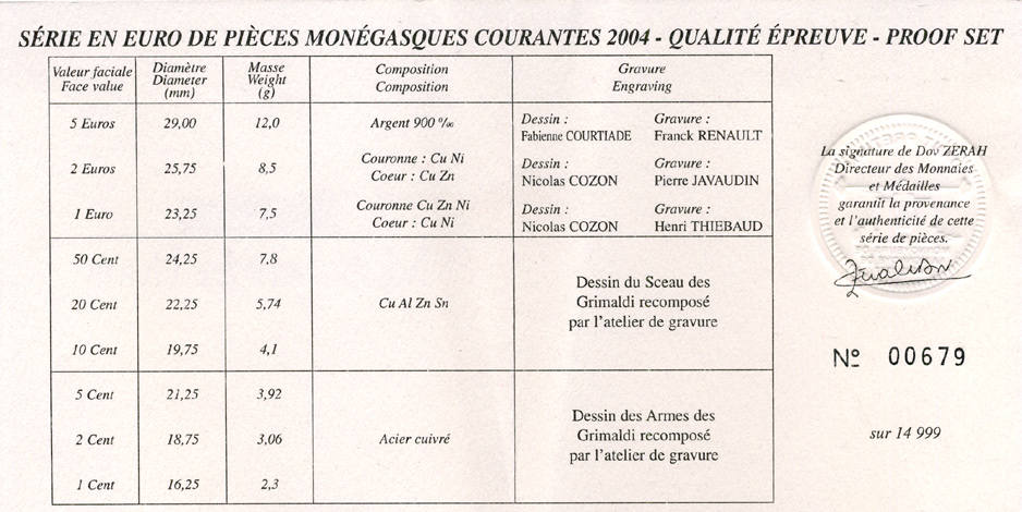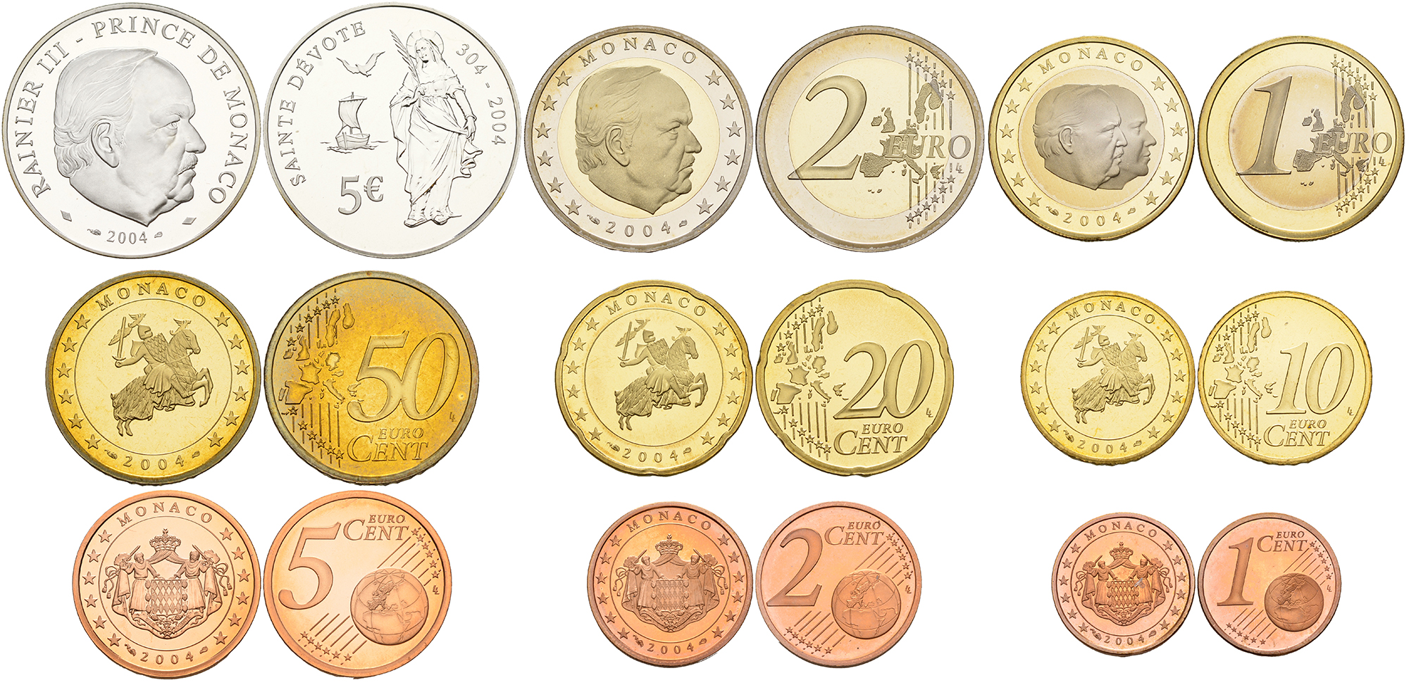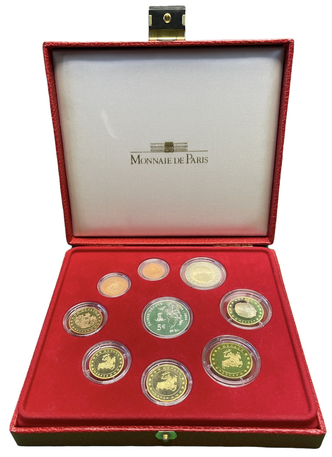 Монако евронабор из 9 монет 2004 в оригинальной коробке с сертификатом биметалл PROOF 4-3-2-09