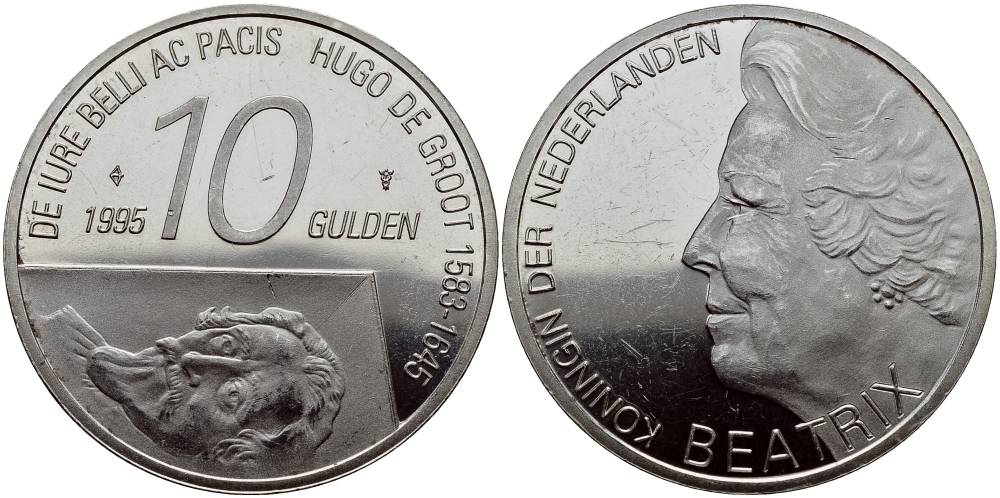 Нидерланды 10 гульденов 1995 300 лет со дня смерти Хьюго Грута, королева Беатрикс KM 220 серебро 1524-931