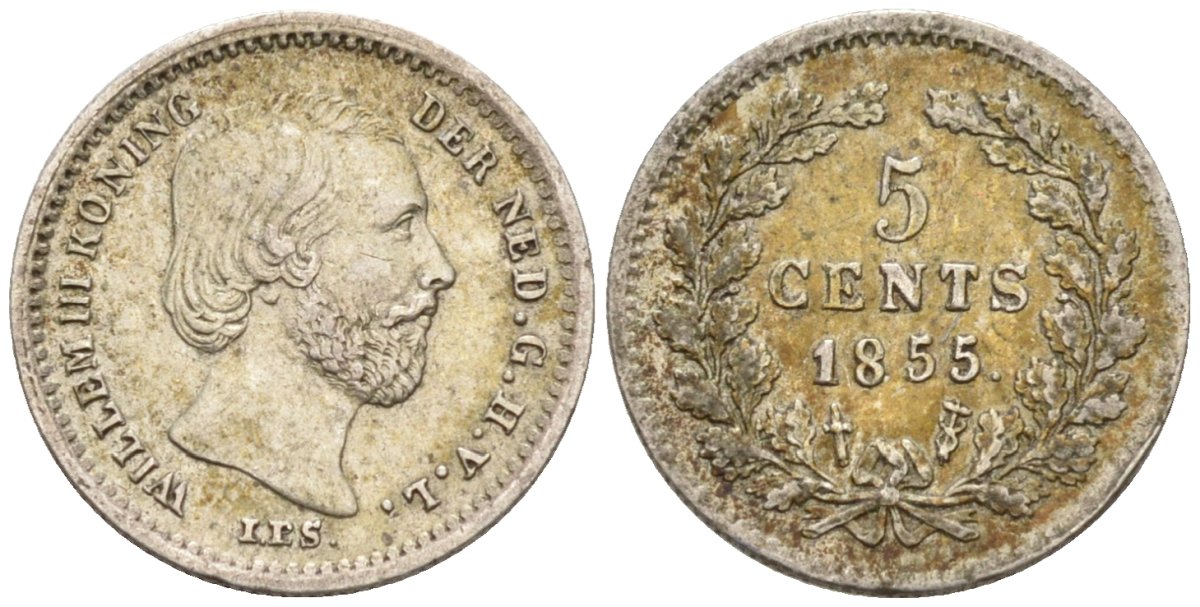 Нидерланды 5 центов 1855 Виллем III (1849-1890) KM 91 серебро 1528-423