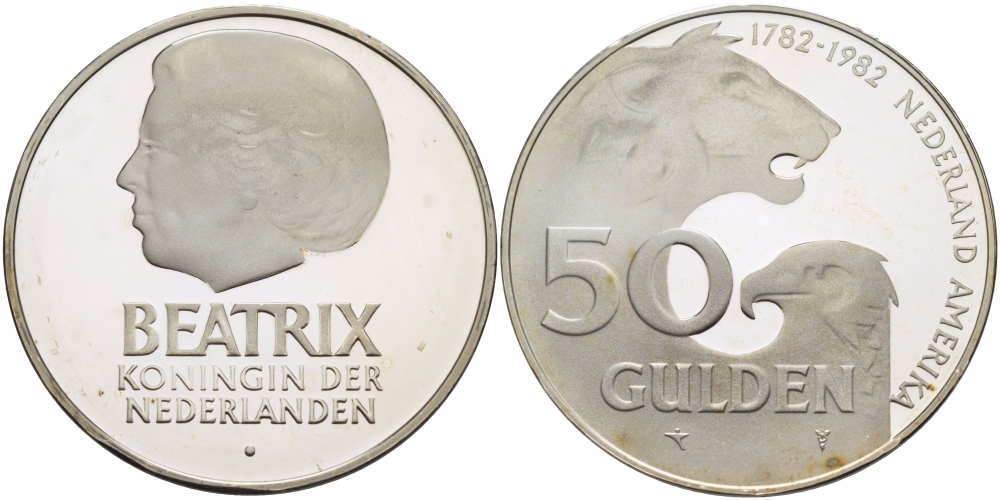 НИДЕРЛАНДЫ 50 ГУЛЬДЕНОВ 1982 ГОЛЛАНДСКО-АМЕРИКАНСКАЯ ДРУЖБА KM 207 серебро PROOF 1068-2-14