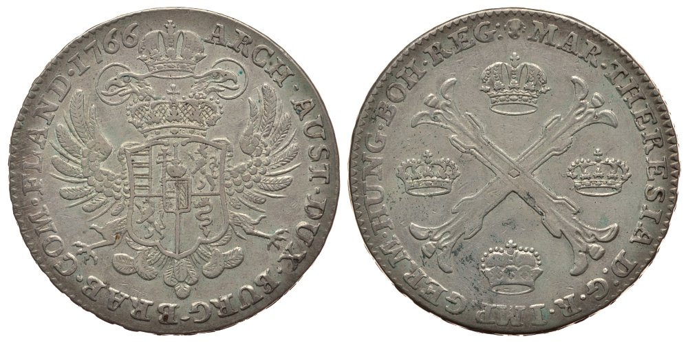 Австрийские Нидерланды 1 кроненталер 1766 Мария Терезия KM 21, Dav.1282 серебро 00-815-77