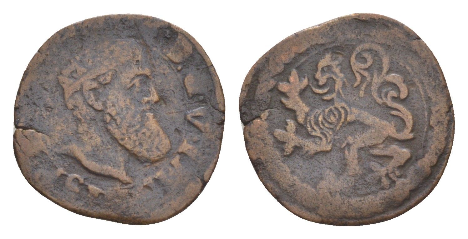 Испанские Нидерланды 2 мит (корте) 1555 монетное соотношение vdCh 2 20.13, HPM 1002, Gelder Hoc 198.4b медь 3711-811
