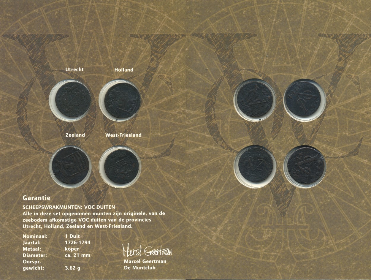 Нидерланды набор из 4 монет по 1 дуиту 1726-1794 Утрехт, Голландия, Зеландия, Западная Фризия, в буклете медь 7-5-5-07
