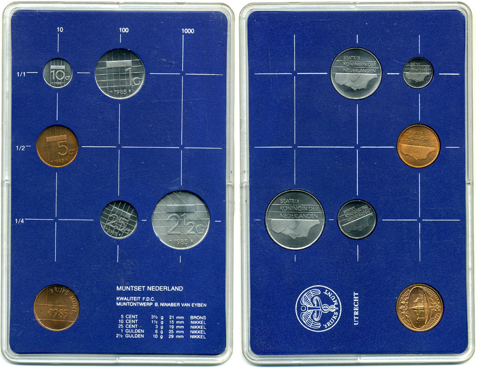 Нидерланды официальный набор из 5 монет + жетон мондвора 1985 в пластике UNC 7-4-80